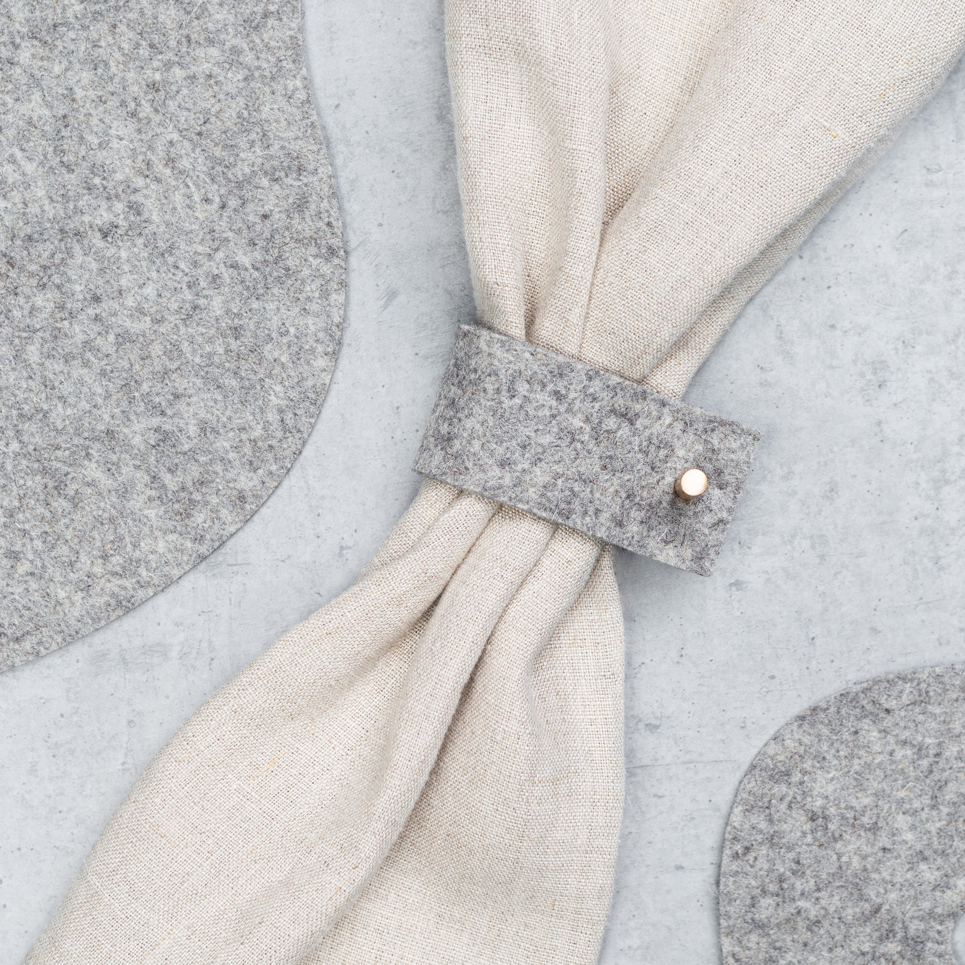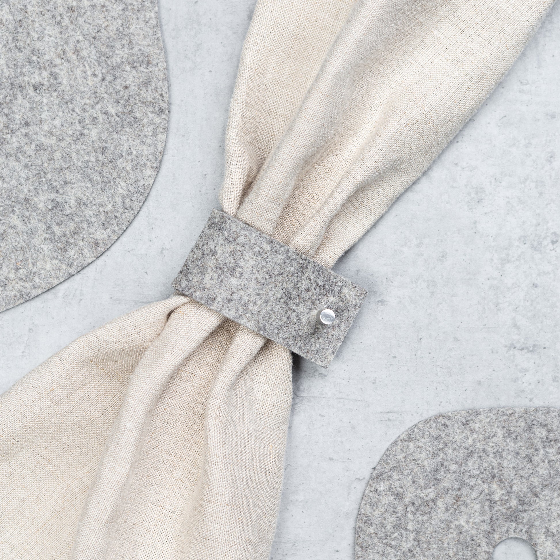 Minimalistische Serviettenringe sind ein elegantes Tischaccessoire – perfekt für festliche Anlässe oder ein gemütliches Abendessen in Ihrem Zuhause. Der Serviettenring ist ein stilvolles Detail für Ihre Servietten und den gesamten Tisch. Hergestellt aus Filzresten (Verschnitte aus der Produktion).