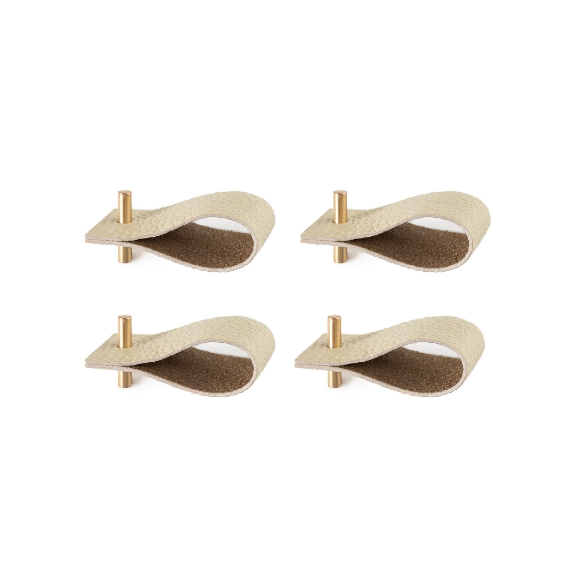 GRÖSSE: Höhe – 3,5 cm, Durchmesser – ca. 4,5 cm FARBE: Elfenbein MATERIALIEN: Natürliches Leder. Aluminium / Messing / Holz