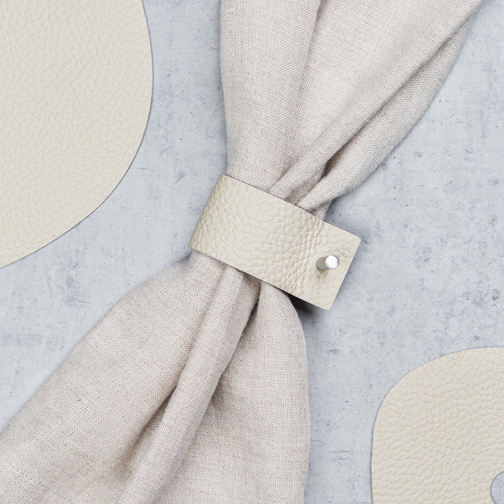 Minimalistische Serviettenringe sind ein elegantes Tischaccessoire – perfekt für festliche Anlässe oder ein gemütliches Abendessen in Ihrem Zuhause. Der Serviettenring ist ein stilvolles Detail für Ihre Servietten und den gesamten Tisch. Hergestellt aus Lederresten (Verschnitte aus der Produktion).