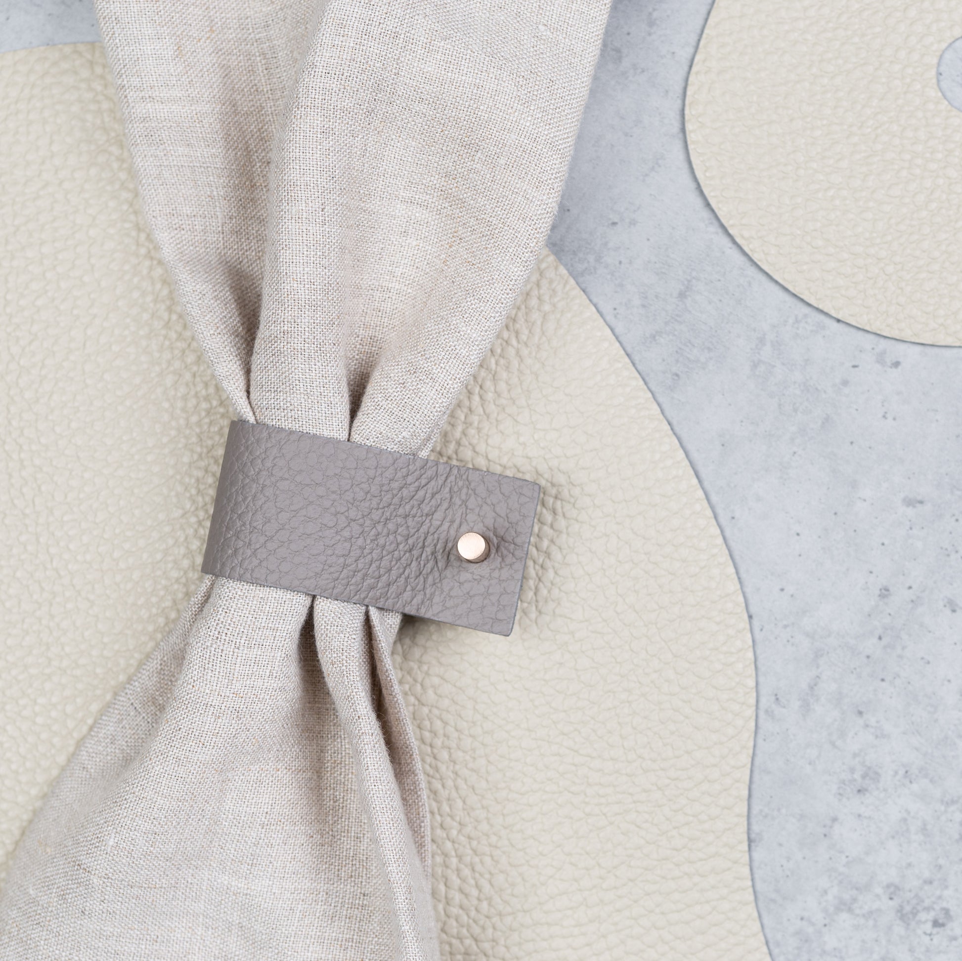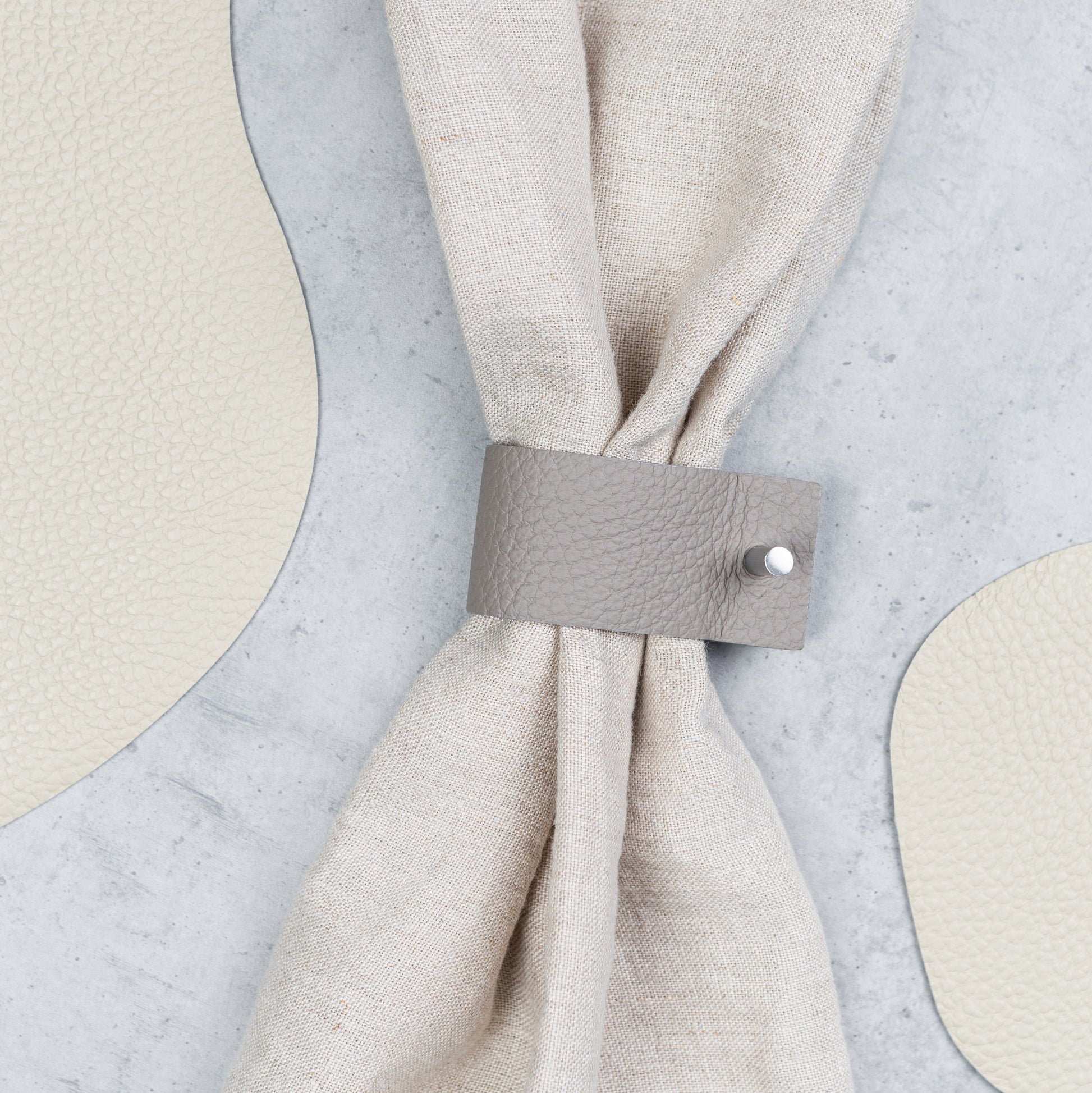 Minimalistische Serviettenringe sind ein elegantes Tischaccessoire – perfekt für festliche Anlässe oder ein gemütliches Abendessen zu Hause. Der Serviettenring verleiht Ihren Servietten und dem gesamten Tisch eine stilvolle Note. Hergestellt aus Lederresten (Verschnitte aus der Produktion).