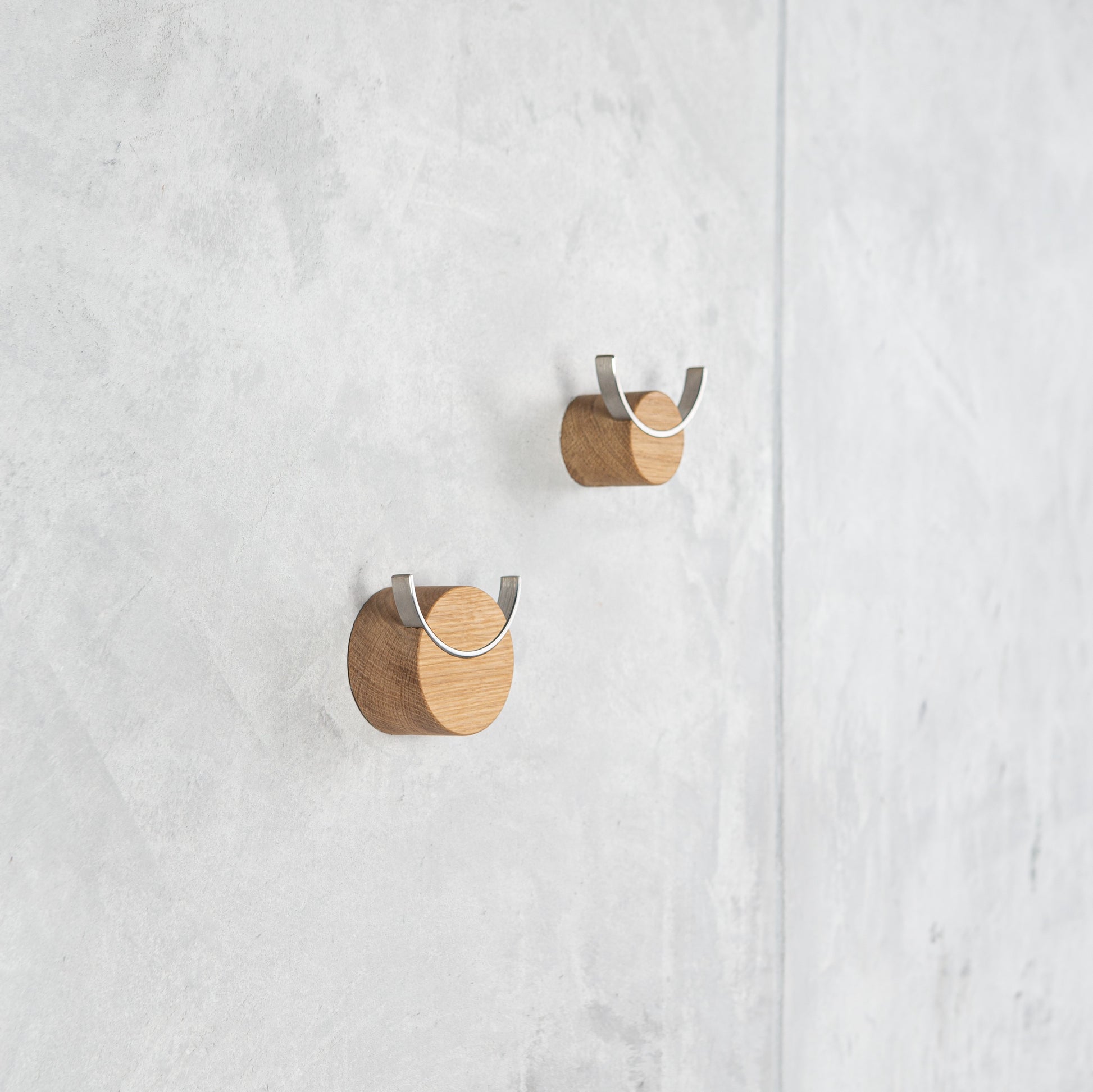 Dieser Holzhaken kann mit anderen Haken derselben Serie kombiniert werden – in verschiedenen Größen, Farben und Metallen.